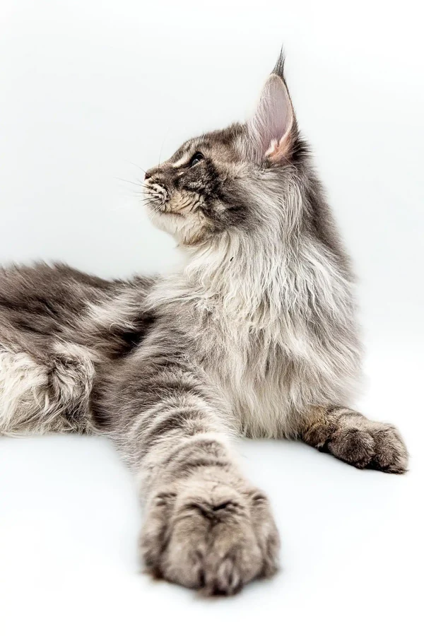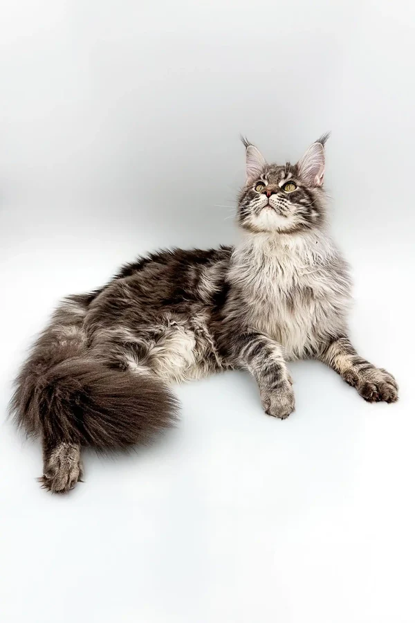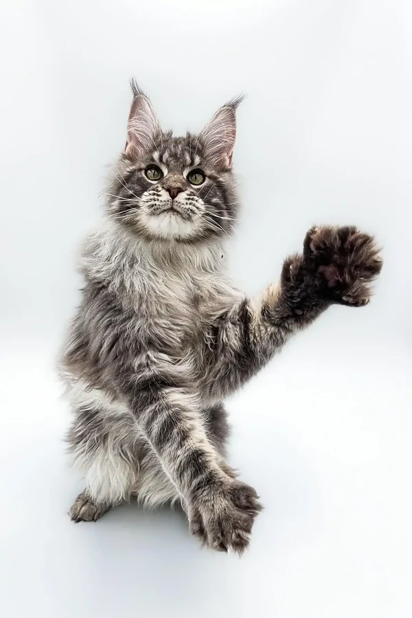 Introducing Omega, an enchanting male European Maine Coon with a Blue Tabby coat and captivating green eyes. Omega’s very long lynx tips, great body composition, and fluffy charm make her truly unique.